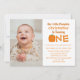 Modern photo little pumpkin 1st birthday invitation. Background is white but can be customised to a colour of your choosing. Template photo credit via Pixabay licensed under CC0 and must be replaced with your own photo