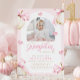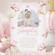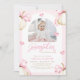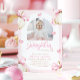 Celebrate your little pumpkin’s first birthday with this adorable photo invitation. Featuring a customisable photo on the front, watercolor pumpkins with a delicate pink bow and heart detail, this design blends fall charm with a sweet coquette aesthetic. Perfect for a feminine and cosy autumn party to honour your baby girl's big milestone!