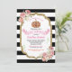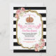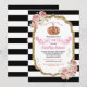 Cute little pumpkin theme baby shower invitation with pink and gold glitter, and chic black and white stripes.