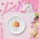 These cute pumpkin paper plates are perfect for anyone celebrating a baby shower this fall time. The design features a hand painted watercolor pumpkin on a simple white background with easy to personalise template wording.