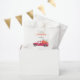 A little pumpkin is on the way baby shower personalised favour bags, featuring watercolor-illustrated red truck with pumpkins. Designed and illustrated with love by Kristine Lee Designs www.kristineleedesigns.com