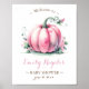Welcome guests to your fall themed baby shower with this sweet little pumpkin party sign. Designed with vintage watercolor pumpkins in shades of soft pink and rustic accents, it's perfect for October and November baby shower themes. Personalise the text to match your event. Available as a printed sign or an instant download for easy at-home printing.