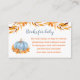 Little Pumpkin Is On The Way! Elegant Fall / Autumn baby shower Books For Baby Card in blue and orange for a boy baby shower. - Kate Eden Art
