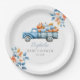 These pretty baby shower photo paper plates feature rustic autumn fall leaves, a cute blue truck full of pumpkins and can be personalised with your name and special date. Designed by Thisisnotme©