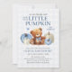 Little Pumpkin Blue Gingham Fall Boy Baby Shower Invitation