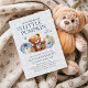 Celebrate the mum to be with this Little Pumpkin Blue Gingham Fall Boy Baby Shower Invitation. Featuring a sweet plush teddy bear, watercolor pumpkins, baby blue gingham background, and cosy autumn tones, this boho design brings a sweet and rustic touch to your celebration. Perfect for a "We Can Bearly Wait" boy baby shower or fall baby sprinkle, this editable invite is easy to customise and print.