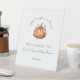 Little Pumpkin Bow Minimal Neutral Baby Shower Pedestal Sign