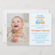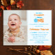 Modern photo little pumpkin boy 1st birthday invitation. Background is blue but can be customised to a colour of your choosing. Template photo credit via Pixabay licensed under CC0 and must be replaced with your own photo