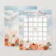 A Little Pumpkin Is On Her Way and it is so exciting! This Baby Shower "Bingo" design features fall coordinating florals arranged into a bouquet with burnt orange, white and greige pumpkins. All on a rustic watercolor sky and earth background. Composite design by Holiday Hearts Designs.