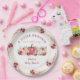 Little Pumpkin Is On The Way, elegant Fall / Autumn Baby Shower paper plates in marsala burgundy, pink and ivory colours in boho style with pumpkins and pampas grass and the ivory / cream edge of the plates. Lovely design for a girl Baby shower. Easily personalise all the text. - Kate Eden Art