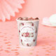 Little Pumpkin Is On The Way, elegant Fall / Autumn Baby Shower Paper Cups in marsala burgundy, pink and cream colours in boho style with pumpkins, flowers and pampas grass and pink background. Easily personalise all the text. - Kate Eden Art