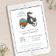 Celebrate the upcoming arrival of a baby boy with this cute "Little Pumpkin on the Way" couples baby boy shower invitation. Perfect for a fall baby shower, this invitation captures the essence of autumn with its hand-drawn illustration featuring a whimsical woodland badger riding a bike. The front of the bike is adorned with a basket holding a baby badger, adding to the overall cuteness. The bike pulls a cart carrying a big, blue pumpkin, making it an adorable choice for first-borns or second babies. This invitation, ideal for an October or fall-themed baby shower or sprinkle, can be easily personalised and is available as a digital download for convenient and hassle-free planning. The back of the invitation showcases the pumpkin with a delicate fall floral pattern, adding a sweet touch that recipients will love. Whether you’re planning a large gathering or a small, intimate event, this invitation is a perfect way to announce your "It's a Boy!" celebration.