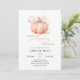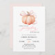 This elegant and charming baby shower invitation features a beautiful watercolor illustration of a pumpkin with a delicate pink ribbon, perfect for celebrating the upcoming arrival of a little one in the fall season.