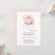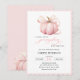 This elegant and charming baby shower invitation features a beautiful watercolor illustration of a pink pumpkin with a delicate pink ribbon, perfect for celebrating the upcoming arrival of a little one in the fall season.