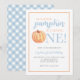 Little Pumpkin Pastel Blue Fall First Birthday Inv Invitation