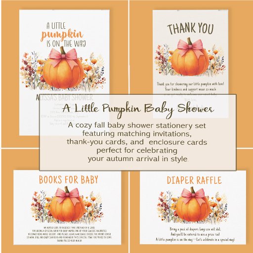 Celebrate your fall baby shower with these adorable “A Little Pumpkin Is on the Way” paper plates. Featuring a sweet watercolor pumpkin topped with a pink bow and surrounded by warm autumn florals, these personalised plates add a festive seasonal touch to your table setting. Perfect for a baby girl shower, they coordinate beautifully with the full Little Pumpkin party collection for a cosy, charming celebration.