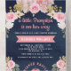 Little Pumpkin Pink Floral Navy Blue Baby Shower All In One Invitation