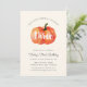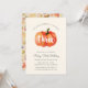 Invite guests to your little one's third birthday bash with our adorable pumpkin party invitations. Design features an orange watercolor pumpkin with "three" inscribed in white hand lettered script typography. Personalise with your first birthday party details using the fields provided. Invitations reverse to a festive autumn botanical pattern.