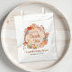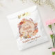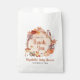 Cute rustic baby shower thank you party favour bags featuring a watercolor illustration of a wreath composed of a tree trunk adorned with cute woodland animals (owl, deer, squirrel and fox), fall florals and orange pumpkins. "Thank You" and the name of the mother-to-be are written in a terracotta script.