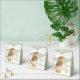 Rustic-style baby shower collection, decorated with soft colors and a vintage watercolor image of a cute little bunny with a parasol, in a style similar to Beatrix Potter's Peter Rabbit.