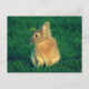 Very cute, furry little rabbit/bunny in orange colour sitting in spring green grass. Beautiful Easter scenery.