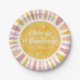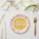 Brighten up your baby shower table with our Sunshine Baby Shower Paper Plates! These charming plates feature a boho design adorned with a watercolor sun, retro typography, and star accents against a soft vintage white background. With their bright and girly colour scheme of pink, peach, and yellow, they set the perfect tone for celebrating your little ray of sunshine on the way. Perfect for serving up delicious treats and meals, these paper plates add a whimsical touch to your party decor.