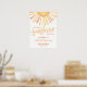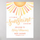Welcome guests to your baby shower with this bright and cheerful sun-themed sign! A large sun with vibrant rays in classic shades of yellow, orange, and a hint of red sits at the top, setting the tone for a warm and joyful celebration. The phrase "A little ray of sunshine is on its way!" is displayed in a playful mix of modern fonts and bold script typography, adding a charming touch.