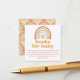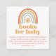This beautiful bright baby shower books for baby enclosure card features a boho style rainbow and sun in a retro style modern font. This books for baby card is perfect for a gender neutral theme and so many retro colors used in the invitation are popular to purchase balloons to match your retro theme. The back of the card features a boho rainbow pattern background.