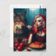 AI generated art of beautiful grown up Little Red Riding Hood with blonde instead of red hair eating a spaghetti dinner with the wolf