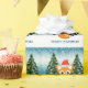 A cute winter scene of a fox wearing a Santa hat in the snow is easily personalised.