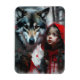 Little Red Riding Hood and the big protective wolf walking with her to guard her from danger alternative fairy tale AI generated version