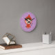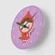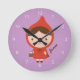 Decorate a little girl's bedroom with this cute clock! It has a little girl in a red cap carrying a tiny basket. Great for little girls who love the little red riding hood story book! Personalise with child's name in the little corner. White numbers for clock face. Purple background can be changed in customisation mode to match the room's colour scheme.