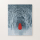 Little Red Riding Hood on a snowy winter walk through the woods. Can You see the Big Bad Wolf howling in the distance? A grungy version of a negative watercolor painting.