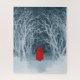 Little Red Riding Hood on a snowy winter walk through the woods. Can You see the Big Bad Wolf howling in the distance? A grungy version of a negative watercolor painting.