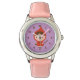 Little girls who love the little red riding hood fairy tale are going to love this cute watch that has a little girl in a red cap carrying a tiny basket. Personalise with child's name at corner. Purple background can be changed in customisation mode. Easy to read clockface for children.