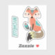 This cute sticker is of a little red fox with teal tribal markings. He sits holding a matching tribal marked feather. Your name is in matching teal on a separate sticker.