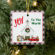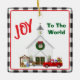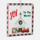 Little red truck with Country Church in winter scene with snowfall - featuring the original "Little Red Truck" artwork of Rick Ellinger from his "Little Red Truck Country Village. Text: Joy to the World!