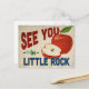 A charming Little Rock Arkansas vintage travel postcard featuring a lovely red apple, along with fun retro style text that says, "See you in Little Rock"