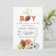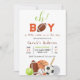 little rookie It's a boy sports Baby Shower Invitation. Our sports Baby Shower invitation is the perfect way to invite friends and family to your party. The design features a Different balls theme, with plenty of space for all the important details such as the date, time, and location of the party. Perfect for any boy sports Baby Shower, it is sure to impress your guests and get them excited for the celebration.