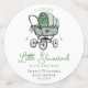 This elegant green and white "Lucky Little Shamrock" gender neutral Irish baby shower confetti features a hand-drawn Victorian baby carriage, lucky green shamrocks and a monogram, all against an elegant white background.