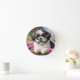Little Shih Tzu Puppy Basket Flowers Round Clock