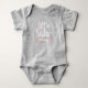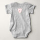 Announce the arrival of your new family member with this fun and cute little sister baby announcement baby bodysuit. Design features a fun typographic design "Little Sister" with pink hearts. Personalise the banner on the front with the child's name and monogram in a heart on the back. All of the graphic colours can be changed to suit your preference. Perfect for a gift for the parents or worn in a fun photo to post on social media.