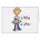 Little Sister T-shirts, bodysuits, long sleeve tees, cards, stickers, magnets, and other little sister apparel and gift items with a stick figure little sister and older brother and kid style ruled line text that reads "Little Sister". Get the Big Brother matching T-shirts too!