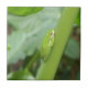 tiny green tree frog hides out from the afternoon heat in the shade of an elephant ear plant