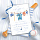 Little Slugger Baseball Clothesline Baby Shower Invitations. Features watercolor baseball jersey one piece, helmet, sports cap, bat, baseball and glove on clothesline in muted beige, tan and blue colours. All wording can be changed, to any age birthday or to a baby shower. To make more changes go to Personalise this template. On the bottom you’ll see “Want to customise this design even further? Click on the EDIT using Design tool. From there you can change some of the fonts & some colours, move things around or delete what you need.