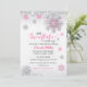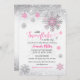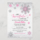 Little Snow Flake Pink Silver Glittery Baby Shower Invitation