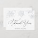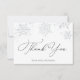 Thank You card features a cascade of silver faux glittery snowflakes. Personalise with your information or click "Click to customise further" to edit font styles, size and colours. Can also be personalised on the back with your own typed message or delete this space to handwrite your own thank you.