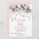 Little snowflake is on her way winter baby shower watercolor pastel pink and grey pines blush pink roses rose gold snowflakes with crystals baby girl editable template invitation instant digital download for winter themed baby shower winter wonderland baby shower.