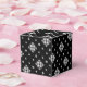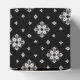 Little white snowflakes and snow crystals on a black background give this gift box a beautiful and dramatic flair. Modern, a little bit Goth, and perfect for your Holiday gifts.