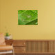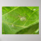 This beautiful print features a detailed photograph of a little garden spider sitting on a broccoli leaf. The tiny creature is almost transparent. The photograph is so detailed you can even see a couple of strands of the spiders’ web.